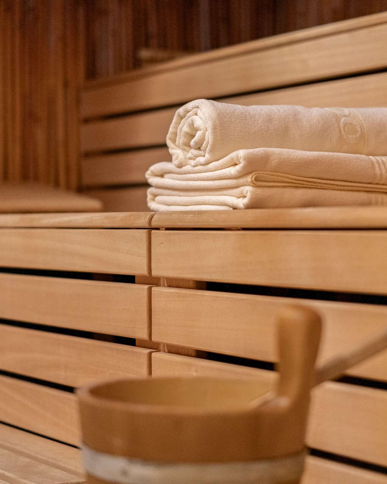 - Sauna area with Bamboo Hyperthermae, salt grotto, four seasons sauna & steam sauna